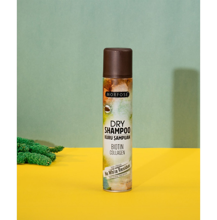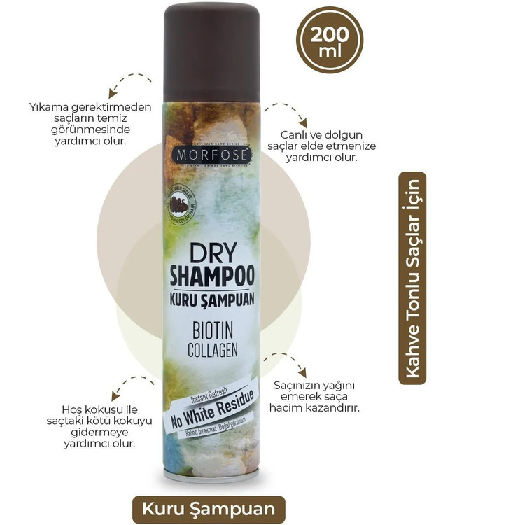 شامپو خشک حاوی بیوتین و کلاژن مناسب موهای رنگ قهوه ای تیره مورفوس 200 میل