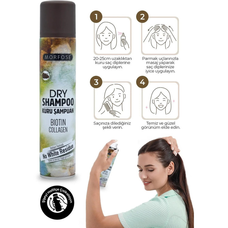نحوه استفاده: برای استفاده از شامپو خشک Morfose، کافی است مقدار کمی از آن را به فاصله چند سانتیمتری از موها پاشیده و با نواحی مساج موها را ماساژ دهید. سپس با استفاده از برس یا دستمال نرم، موها را به طور کامل ماساژ دهید تا محصول به طور یکنواخت جذب شود.