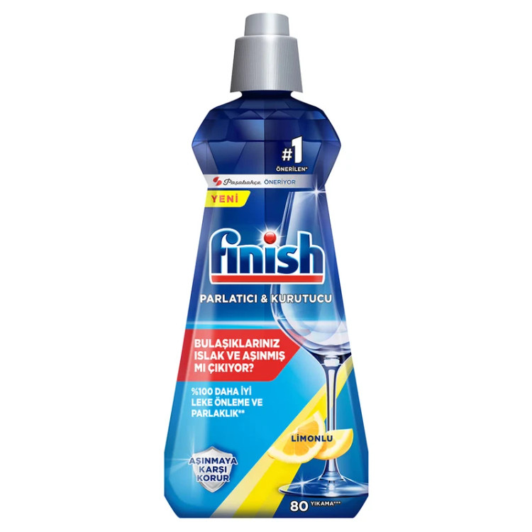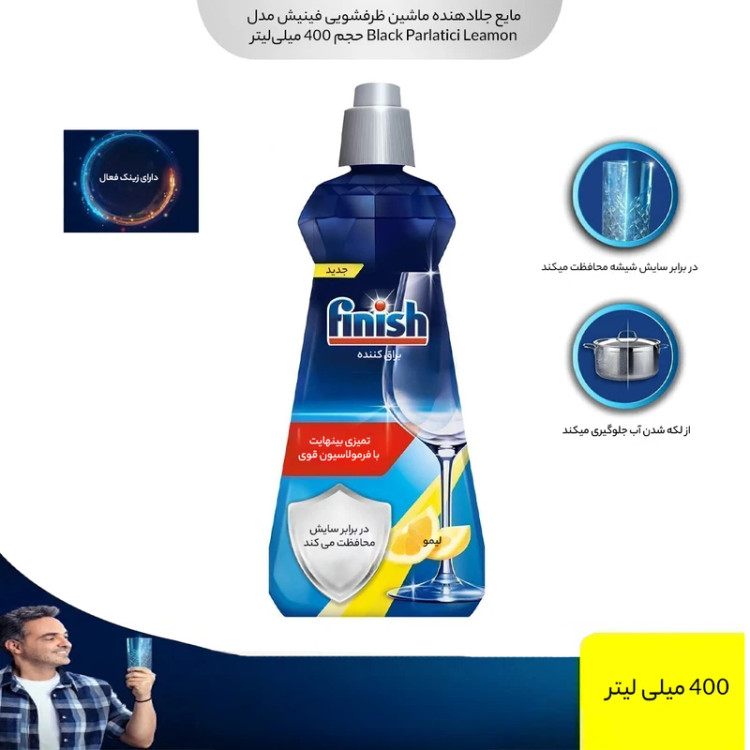 مایع جلادهنده ماشین ظرفشویی فینیش 400 میل دارای رایحه لیمو محتویات با کیفیت و ساختار غلیظ می باشد که کیفیت خوب آن سبب شده است تا 80 شستشو قابل استفاده باشد. این محصول مانع از برجا ماندن لکه های آب در ظروف شیشه ای می شود؛ از مات و کدر شدن آن ها جلوگیری می کند و ظروفی براق و درخشان برای مصرف کننده به وجود می آورد.