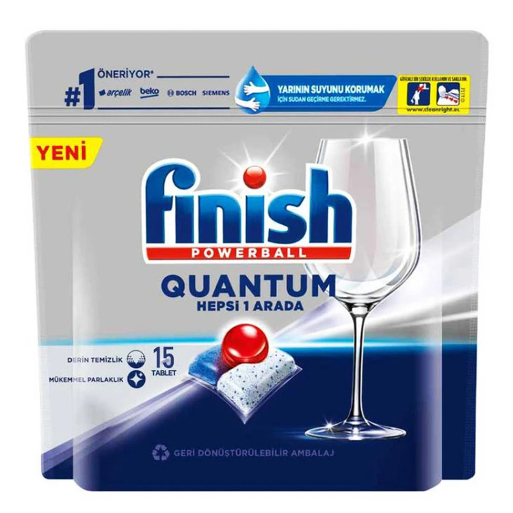 قرص ماشین ظرفشویی فینیش با قابلیت تمیزکنندگی فوق العاده قوی، براق کنندگی، چربی و لکه زدایی و همچنین جلوگیری از ایجاد رسوب و آهک در ماشین ظرفشویی یکی از بهترین انتخاب ها برای شستشوی ظروف است. این محصول بدون رایحه عرضه است و عطر خوش پاکیزگی در ظروف و دستگاه به جا می گذارد. این محصول جدیدترین سری قرص ماشین ظرفشویی برند finish بوده که به دلیل داشتن فرمول جدید حتی سخت ترین لکه های سوخته و خشک شده غذا را از بین می برد. نحوه استفاده از قرص ماشین ظرفشویی بسیار آسان است. کافیست ابتدا باقیماندهی ذرات غذایی ظروف را پاک کنید و طبق دستورالعمل سازنده ی ماشین ظرفشویی، قرص را درون ماشین قرار دهید. مشخصه ها این محصول با قدرت تمیز کنندگی بالا نیاز به خیساندن ظروف را از بین می برد و بنابراین به صرفه جویی در مصرف آب تا 57 لیتر کمک شایانی می کند. سبب براق و درخشان شدن بینظیر ظروف شیشه ای می شود و از ظروف شیشه ای محافظت کرده و مانع لب پر شدن ظرف ها می گردد. این محصول برای کسانی که غذا خوردن و غذا درست کردن را دوست دارند؛ کار سخت شستن ظروف را آسان تر می کند. دیگر بدون اینکه به مشکل شستن ظروف فکر کنید می توانید از خوردن غذا کنار کسانی که دوست دارید لذت ببرید. قابلیت چربی زدایی این محصول سلامت طولانی مدت دستگاه را تضمین می کند. در نتیجه با پیشگری از بروز خرابی در دستگاه، هزینه تعمیرات آن را کاهش می دهد. برای استفاده از آن نیازی به جدا کردن پوشش قرص نیست و قابلیت حل شدن در آب را دارد. فینیش کوانتوم با قیمت مناسب و موادی که درونش دارد پاک کنندگی قدرتمندی ارائه می دهد، نسبت به پاکسازی لکه های سرسخت نیز نتیجه ای موفقیت آمیز دارد و انتخابی اقتصادی خواهد.